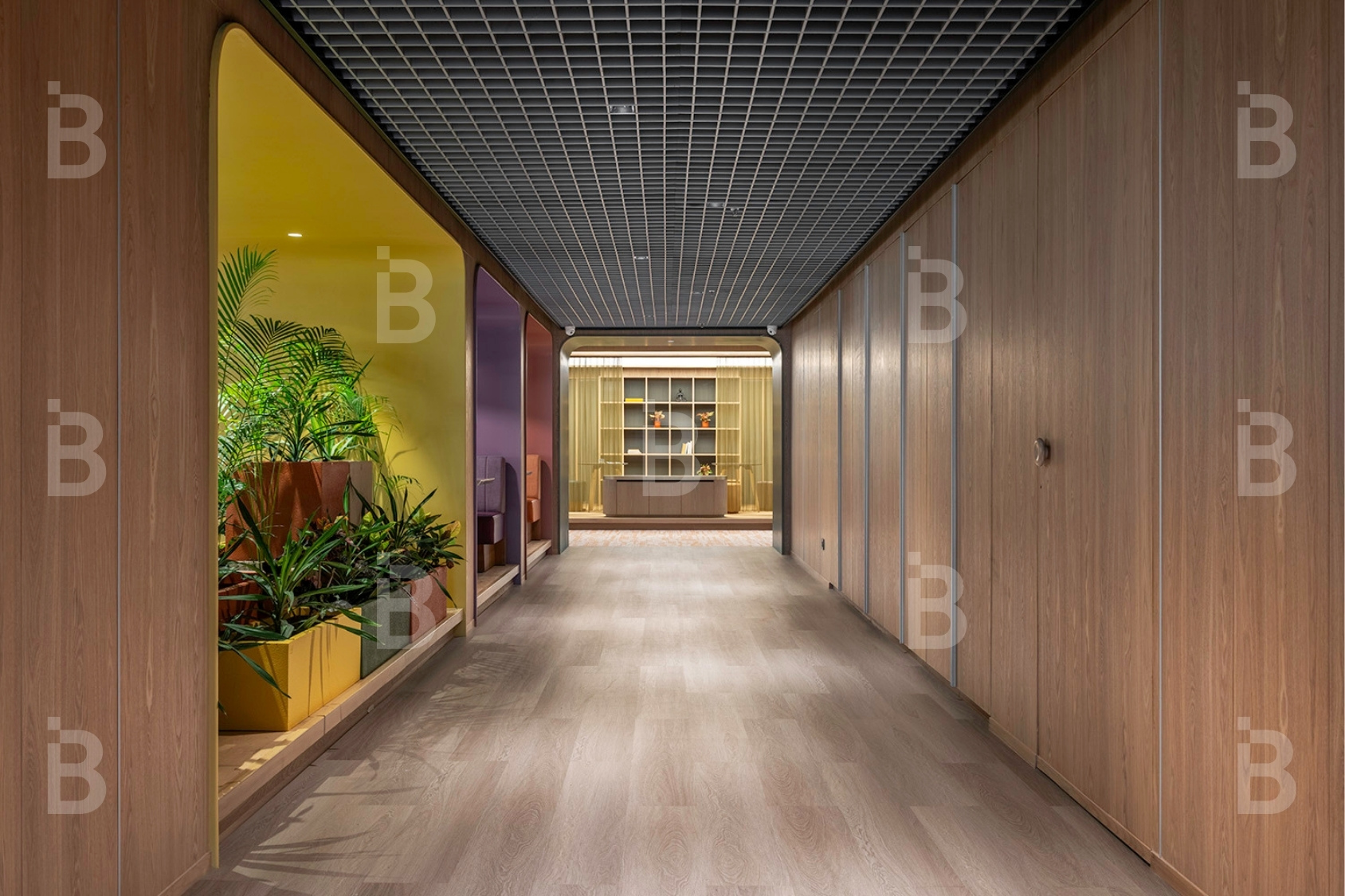 The passage ceiling—articulated with linear and disciplined grid—quietly reinforces orientation. Its crisp geometry underscores movement without dramatics. What was once a bold infrastructural gesture now feels restrained, almost effortless.